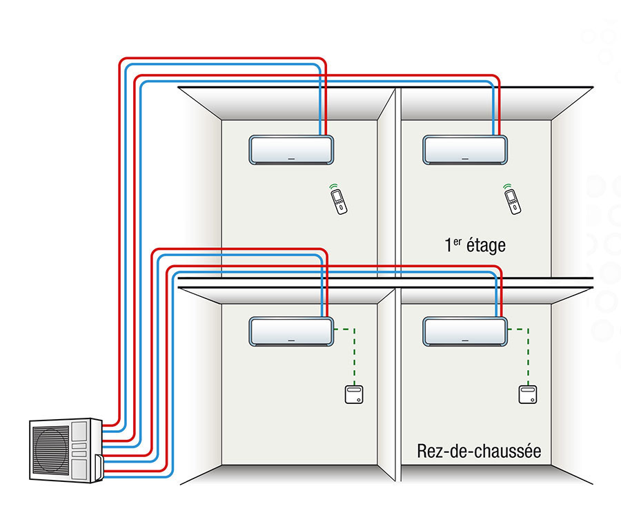 При включении такой системы кондиционирование возможно сразу во всех помещениях, оборудованных внутренними блоками, каждый из которых имеет свой собственный контур, не связанный с другими.