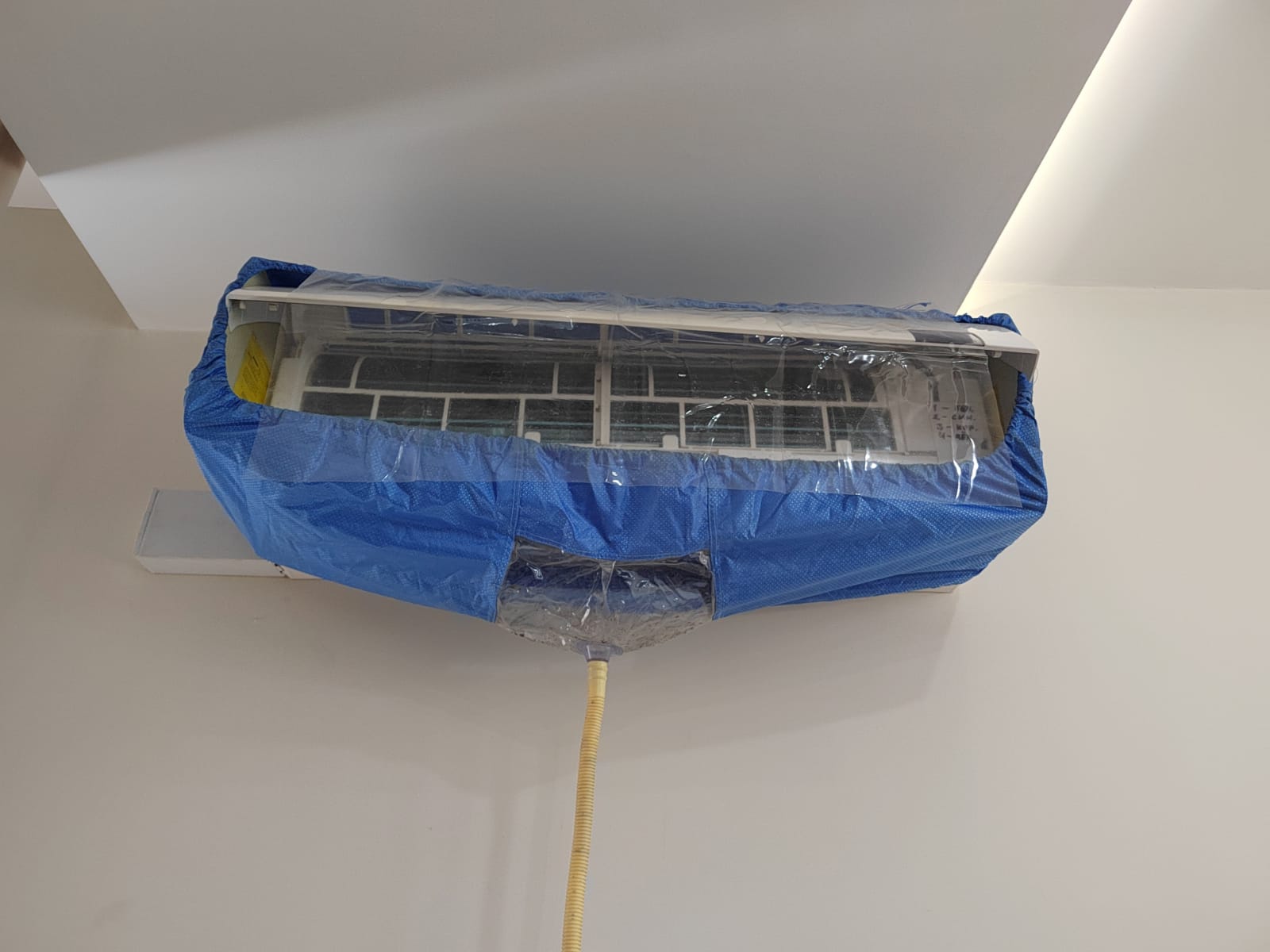 - Чистка теплообменника внешнего блока (мойка производится аппаратом высокого давления с применением моющего средства).