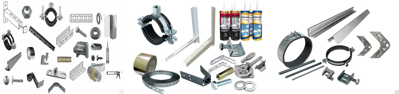 При креплении оборудования вентиляционных систем используются аксессуары для монтажа вентиляции — расходные материалы. Это, скотч, шины монтажные, уголки оцинкованные, уплотнительные материалы, скобы, монтажная пена, хомуты для крепления труб, элементы фиксации конструкций, шпильки, перфоленты и прочие... Аксессуары для монтажа вентиляции применяются для закрепления воздуховодов, придания каналам жесткости, герметизации и защиты стыков воздуховодов. Аксессуары для монтажа вентиляции зависят от конструкции воздуховодов и того, как секции собираются в единую систему.